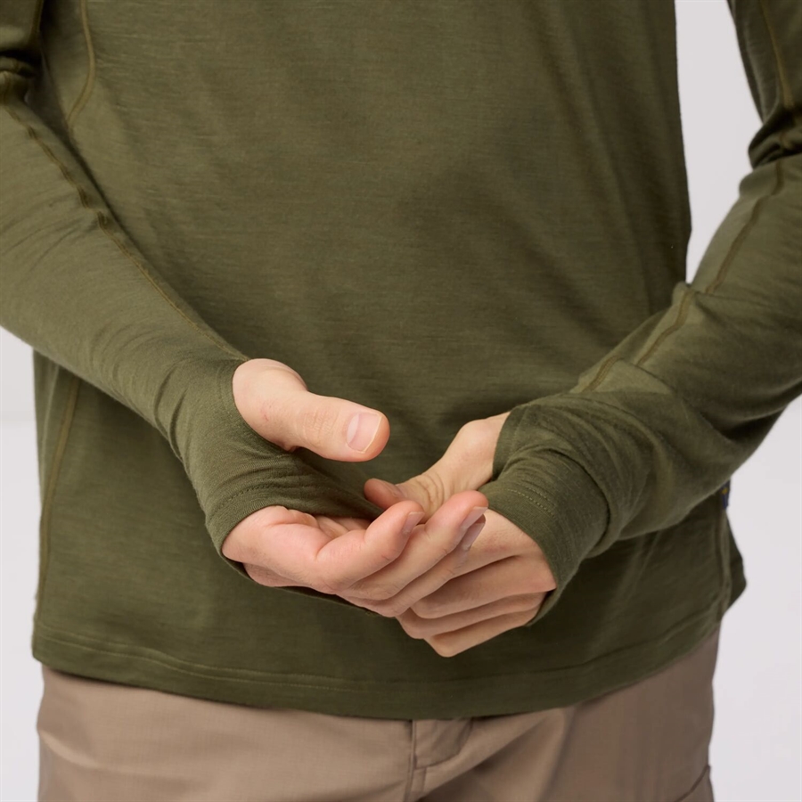 Abisko uldhættetrøje til mænd er det perfekte første lag i både varmt og koldt klima, da den kombinerer uldens temperaturregulerende egenskaber med de syntetiske fibres holdbarhed og fugttransporterende egenskaber.