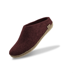 En lækker og absolut behagelig filttøffel i 100% ren uld, og med såler af garvet kalveskind.