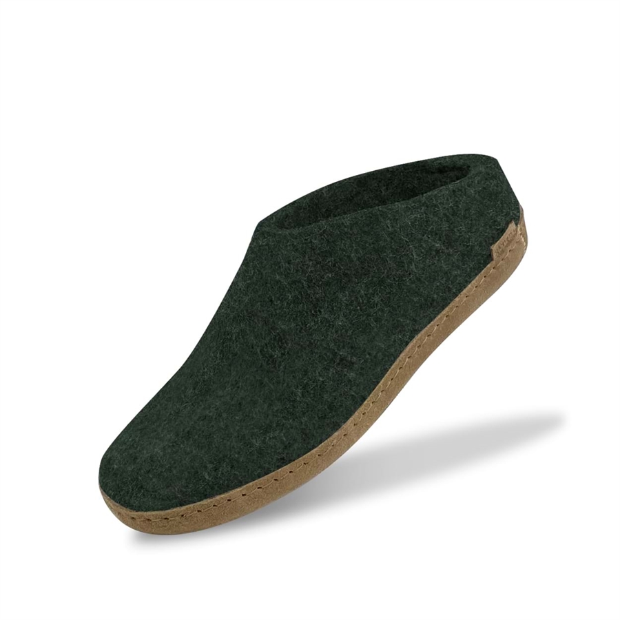En lækker og absolut behagelig filttøffel i 100% ren uld, og med såler af garvet kalveskind.