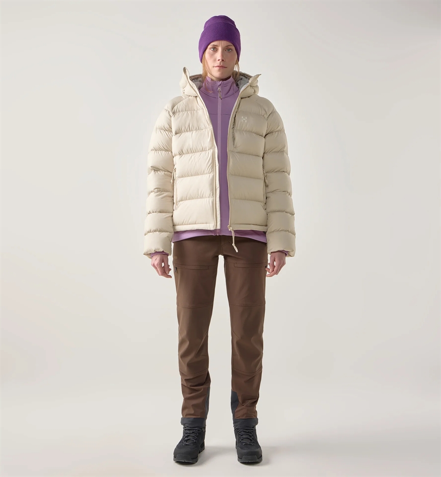 Haglöfs Rosson Down Hood Jacket - Women - Chalk Beige er en varm og luftig dunjakke til eventyr i koldt vejr.
