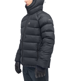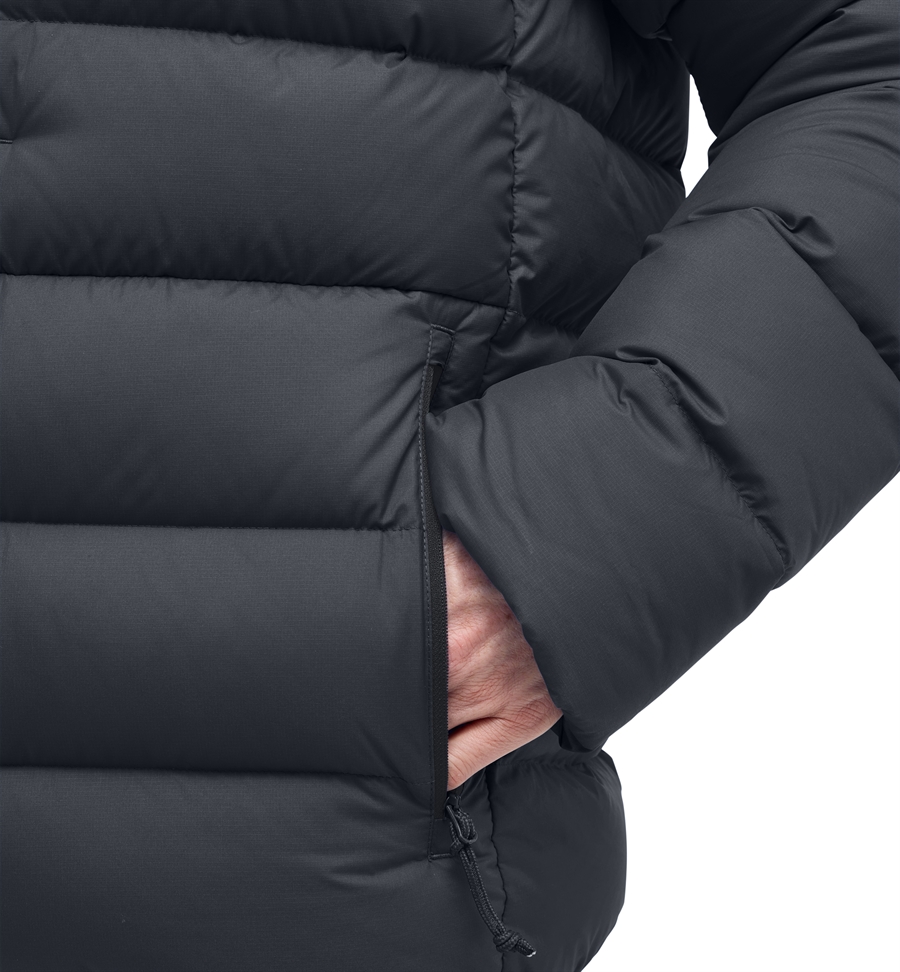 Haglöfs Rosson Down Hood Jacket - Men - True Blacker en varm og luftig dunjakke til eventyr i koldt vejr.
