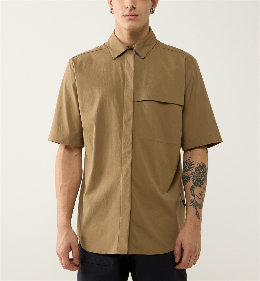 Du finder en fuld knapåbning og en brystlomme til småting. Kortærmet skjorte med god varmeregulering.