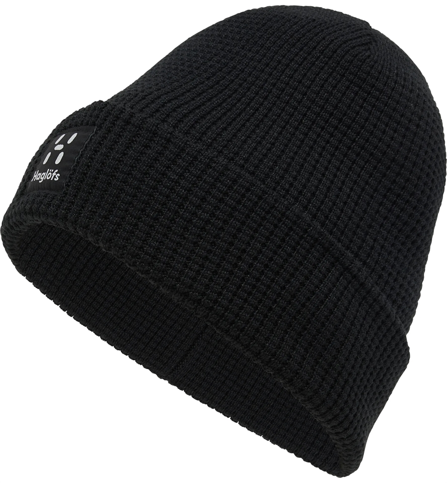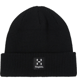 Haglöfs Thermal Beanie - True Black - Hue Er du på vej ud i kulden? Fuldend dit out-fit med lidt tilbehør, der langt hen ad vejen bevarer kropsvarmen, hvor den hører hjemme. Denne beskyttende hue er strikket i en garnblanding af delvist genanvendt polyestergarn og har en konstruktion i dobbeltlag for ekstra isolering. Dobbeltlag giver dine ører og pande ekstra dækning uden at tilføje for meget volumen.