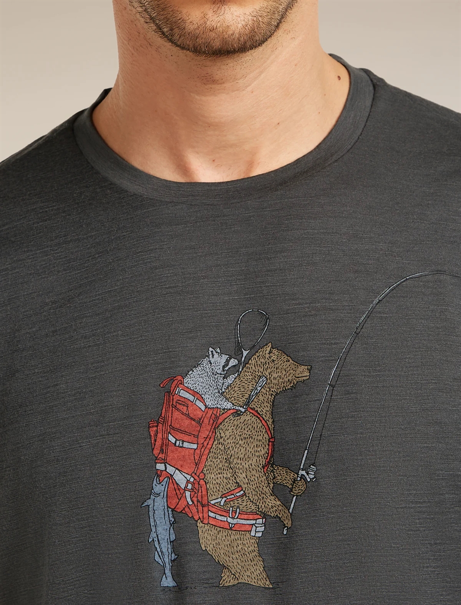 Icebreaker Men's Merino 150 Tech Lite SS Tee BEAR CATCH - Obsidian - Kortærmet uldtrøje