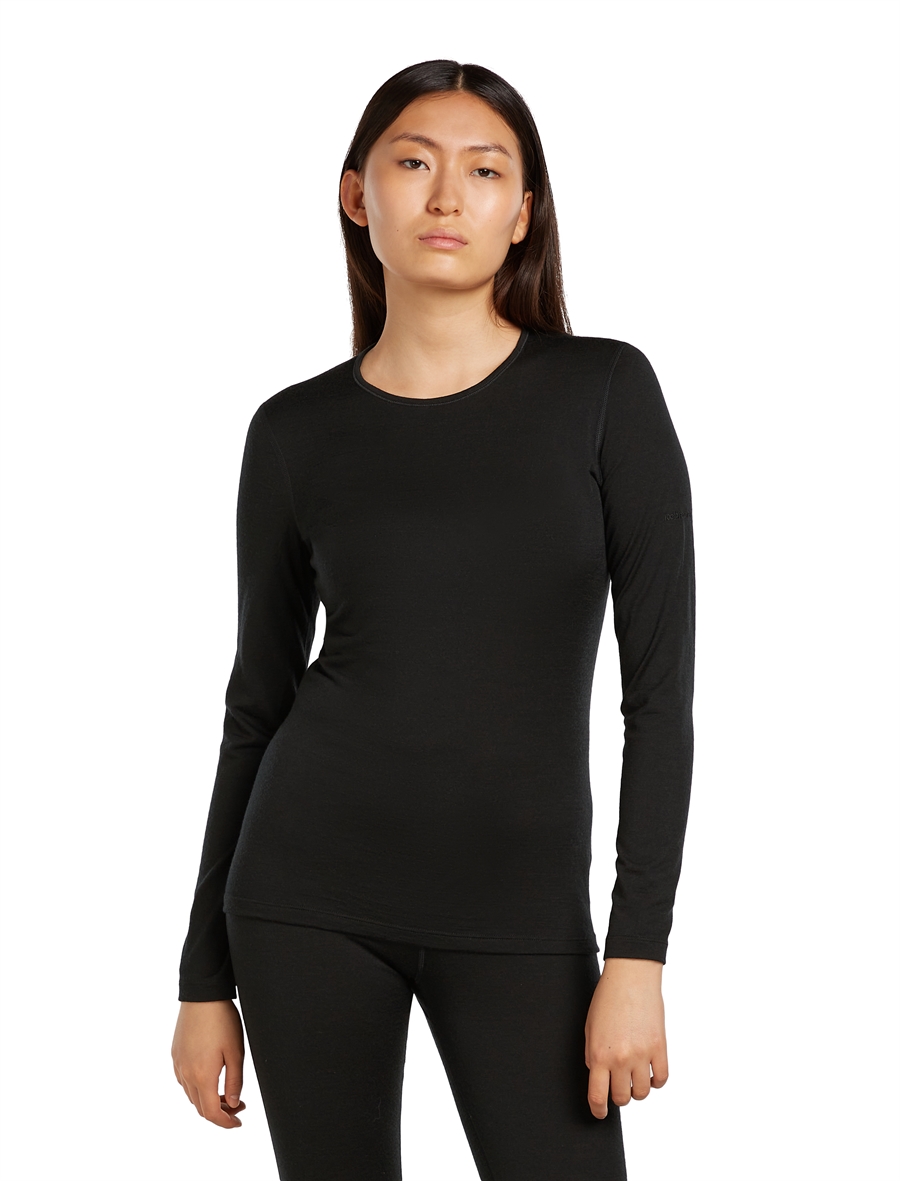 Icebreaker Women's Merino 200 Oasis LS Crewe - Black - Langærmet uldtrøje