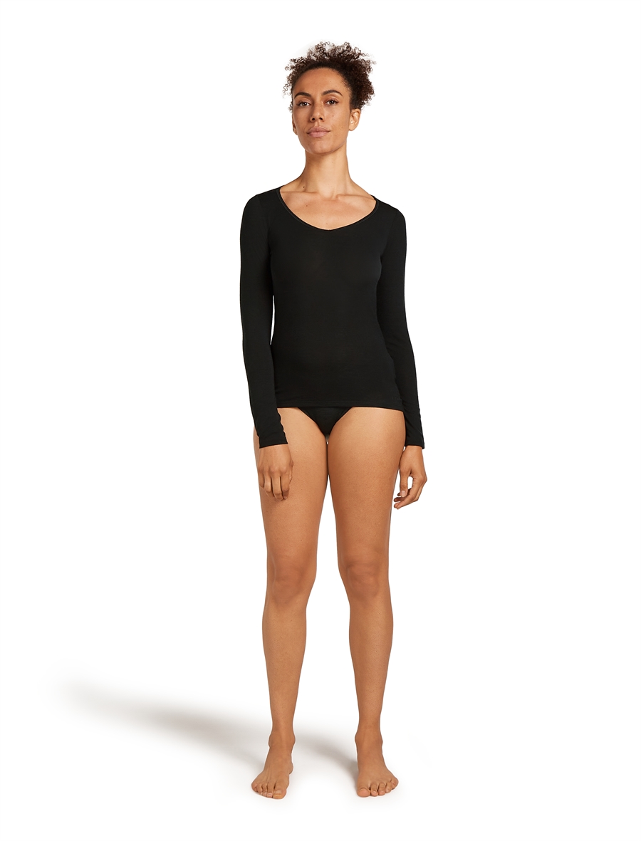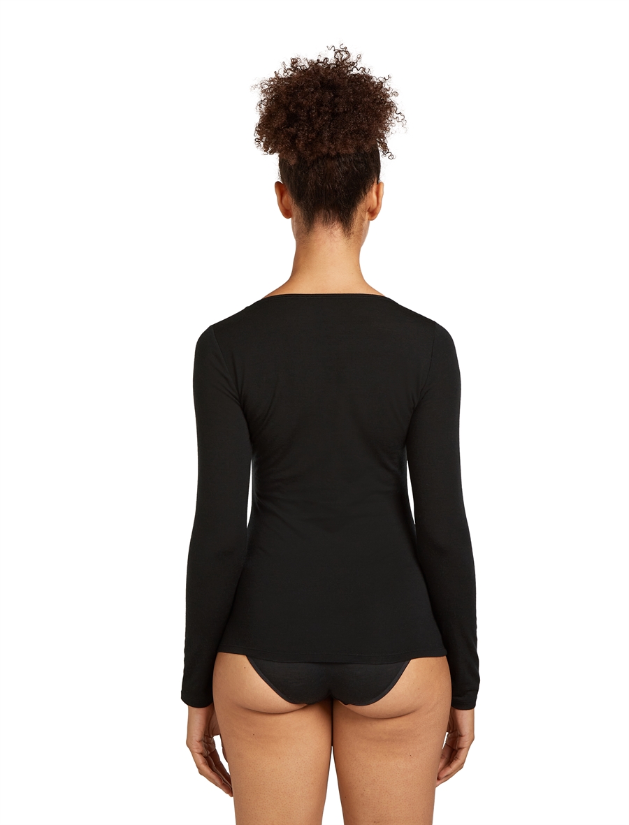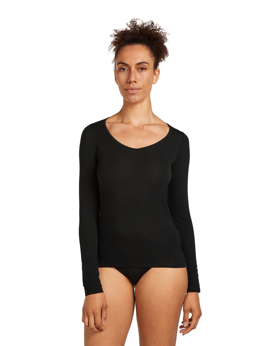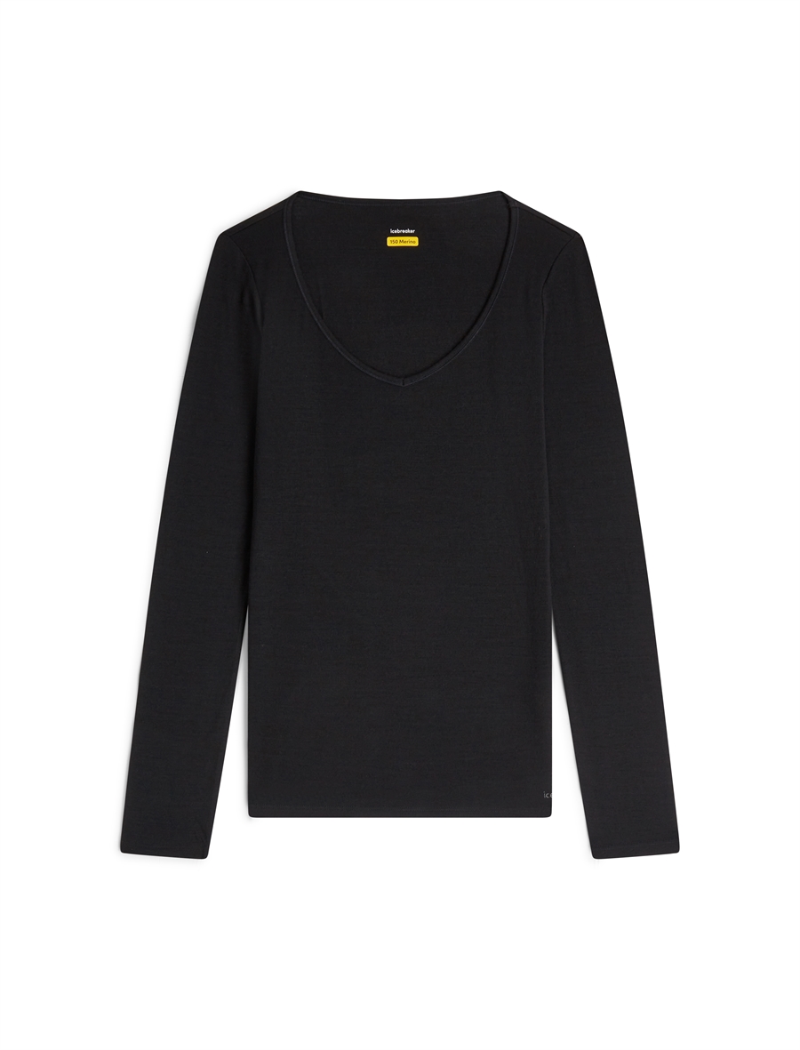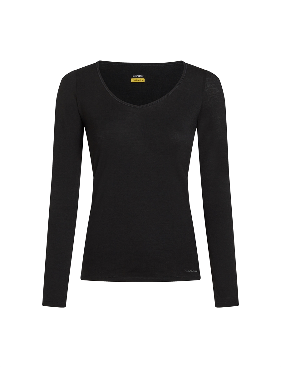 Icebreaker Women's Merino Blend 150 Siren LS Sweetheart - Black - Langærmet uld-undertrøje
