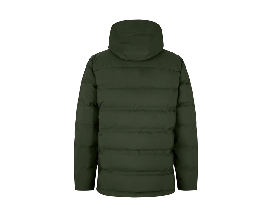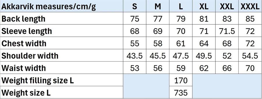 Akkarvik fra Nordisk er en sømløs dunjakke med komplet vejrbeskyttelse. Den er åndbar på grund af dens naturlige dunfyld, og har en membran, som lader varmen forsvinde ud.