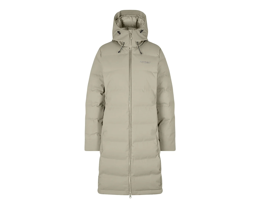 Moana Womens Bonded Hardshell Down Coat fra Nordisk er en elegant dunfrakke, som beskytter mod al slags vejr, så du ikke behøver bekymre dig om det.