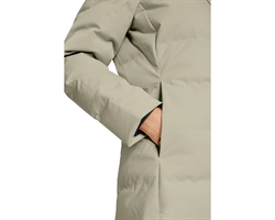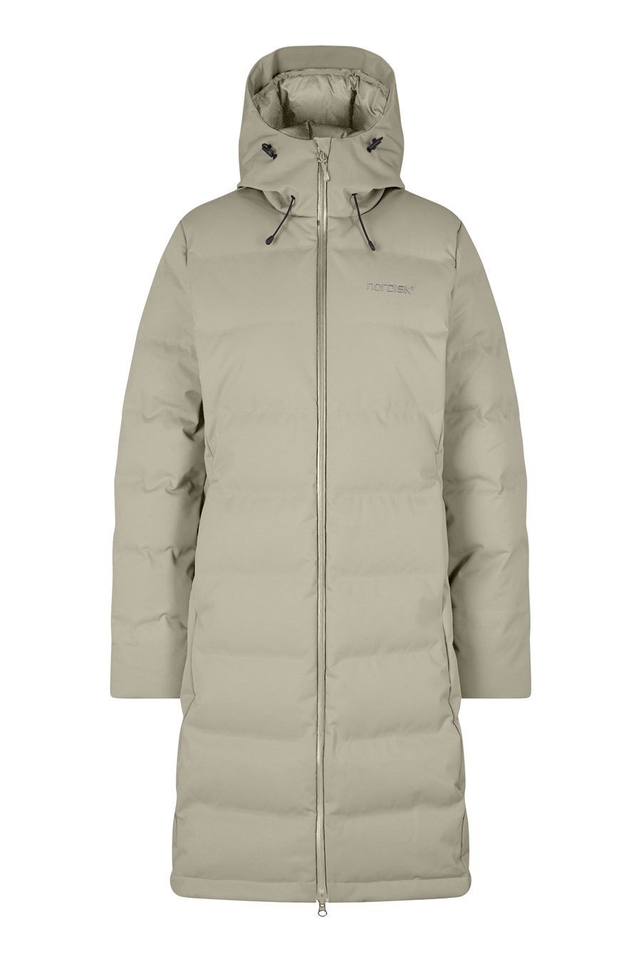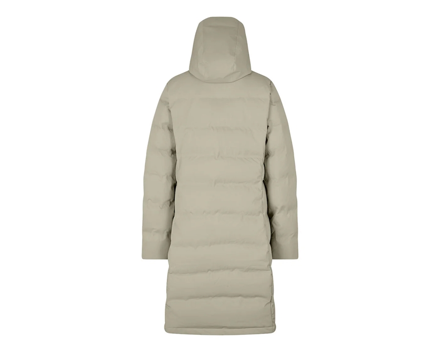 Hvis du skal bruge én lang frakke, som kan holde dig varm og tør - kan denne dunfrakke i den grad anbefales. Moana er en ekstra lang dunjakke i bæredygtige materialer. Frakken er uden syninger, og derfor er der ingen små huller, som kan nedsætte vandtætheden.