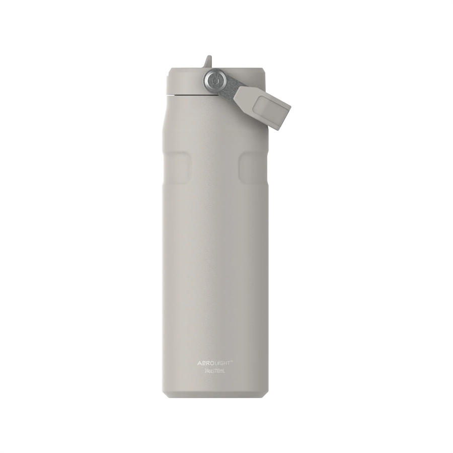 Stanley IceFlow Bottle Flip Straw 2.0 er en moderne drikkeflaske med dobbeltvægget termoisolering, hvilket gør den fremragende til at holde dit vand koldt i meget lang tid. Den lette termoflaske, er udviklet til dig der er på farten, pendler eller bare vil have en god og solid drikkeflaske med i træningscentret. Det integrerede håndtag gør det utroligt nemt at have flasken med og lige ved hånden. Ydermere kan det nævnes at Stanley med hjælp fra deres Aerolight teknologi, har reduceret vægten med 33% sammenlignet med den gængse termodrikkedunk.