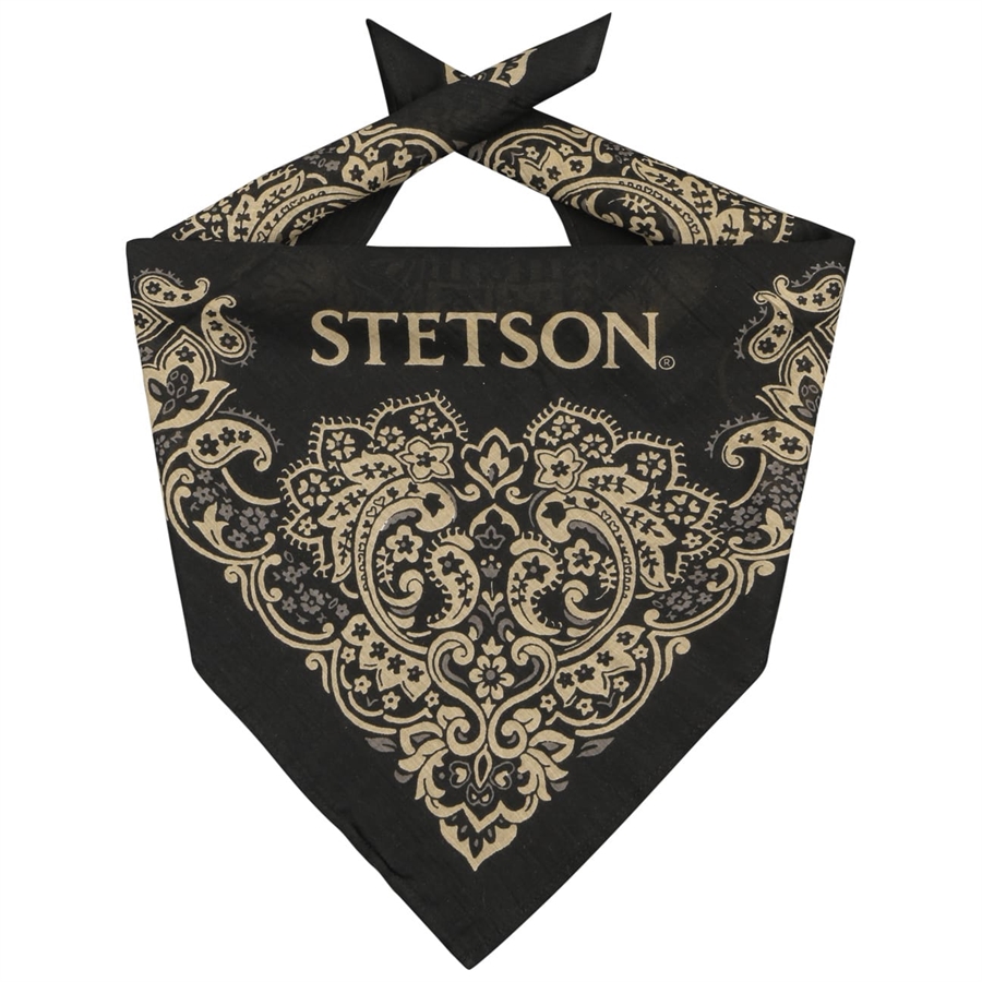 Denne bandana med dens klassiske paisleymønster er lavet af Stetson. Mærkebogstaverne, der kontrasterer med baggrundsfarven, afslører bandanaens oprindelse. Uanset om den bæres som et halstørklæde, hovedtørklæde eller afslappe hårbånd passer dette tilbehør perfekt sammen med outfits. Det er lavet af 100% bomuld og kombinerer hudvenlige egenskaber med høj åndbarhed.